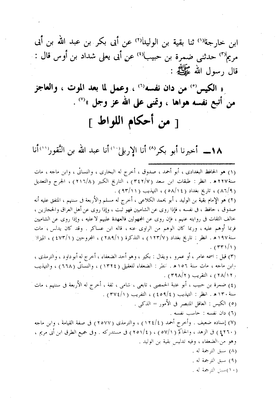 18 - أَخْبَرَنَا أَبُو بَكْرٍ أَنَا الْإِرْبِلِيُّ أَنَا عَبْدُ اللَّهِ بْنُ النَّقُّورِ أَنَا