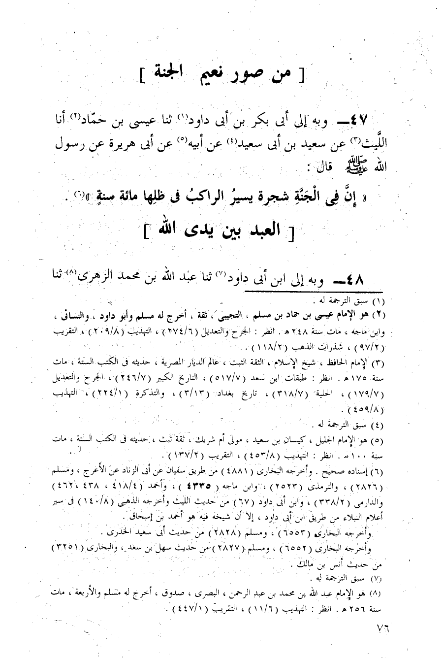 إِنَّ فِي الْجَنَّةِ شَجَرَةً يَسِيرُ الرَّاكِبُ فِي ظِلِّهَا مِائَةَ سَنَةٍ