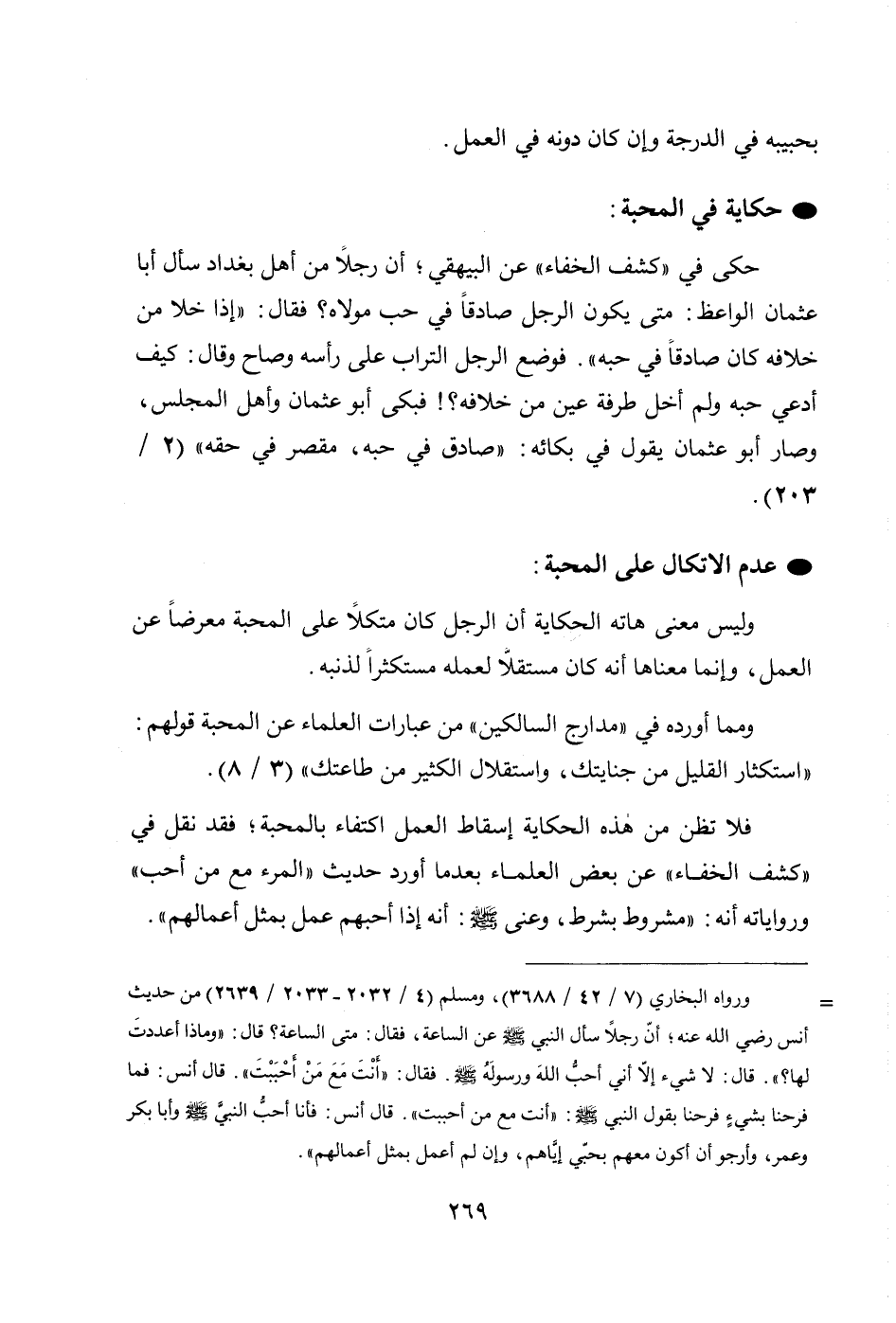 وليس معنى هاته الحكاية أن الرجل كان متكلاً على المحبة معرضاً عن العمل، وإنما معناها أنه كان مستقلّا لعمله مستكثراً لذنبه.