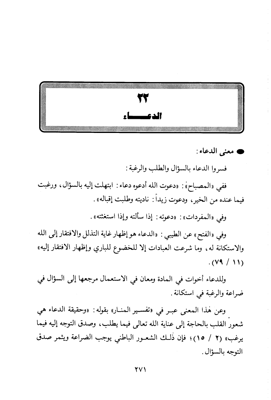 وعن هذا المعنى عبر في " تفسير المنار " بقوله: " وحقيقة الدعاء هي شعور القلب بالحاجة إلى عناية الله تعالى فيما يطلب، وصدق التوجه إليه فيما يرغب " (2/ 15)؛ فإن ذلك الشعور الباطني يوجب الضراعة ويثمر صدق التوجه بالسؤال.