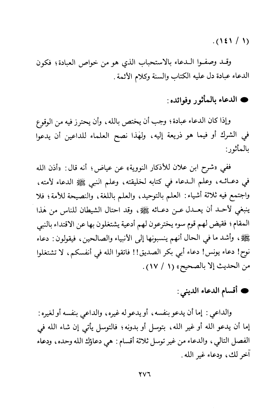 والداعي: إما أن يدعو بنفسه، أو يدعو له غيره، والداعي بنفسه أو لغيره: إما أن يدعو الله أو غير الله، بتوسل أو بدونه، فالتوسل يأتي إن شاء الله في الفصل التالي، والدعاء من غير توسل ثلاثة أقسام: هي دعاؤك الله وحده، ودعاء آخر لك، ودعاء غير الله.