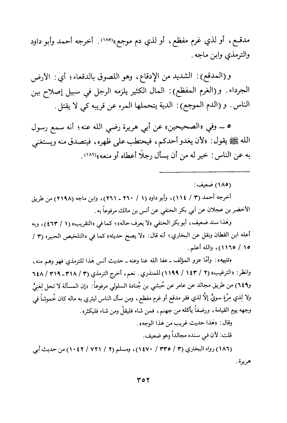 مُدْقِعٍ، أَوْ لِذِي غُرْمٍ مُفْظِعٍ، أَوْ لِذِي دَمٍ مُوجِعٍ» (185). أخرجه أحمد وأبو داود والترمذي وابن ماجه.