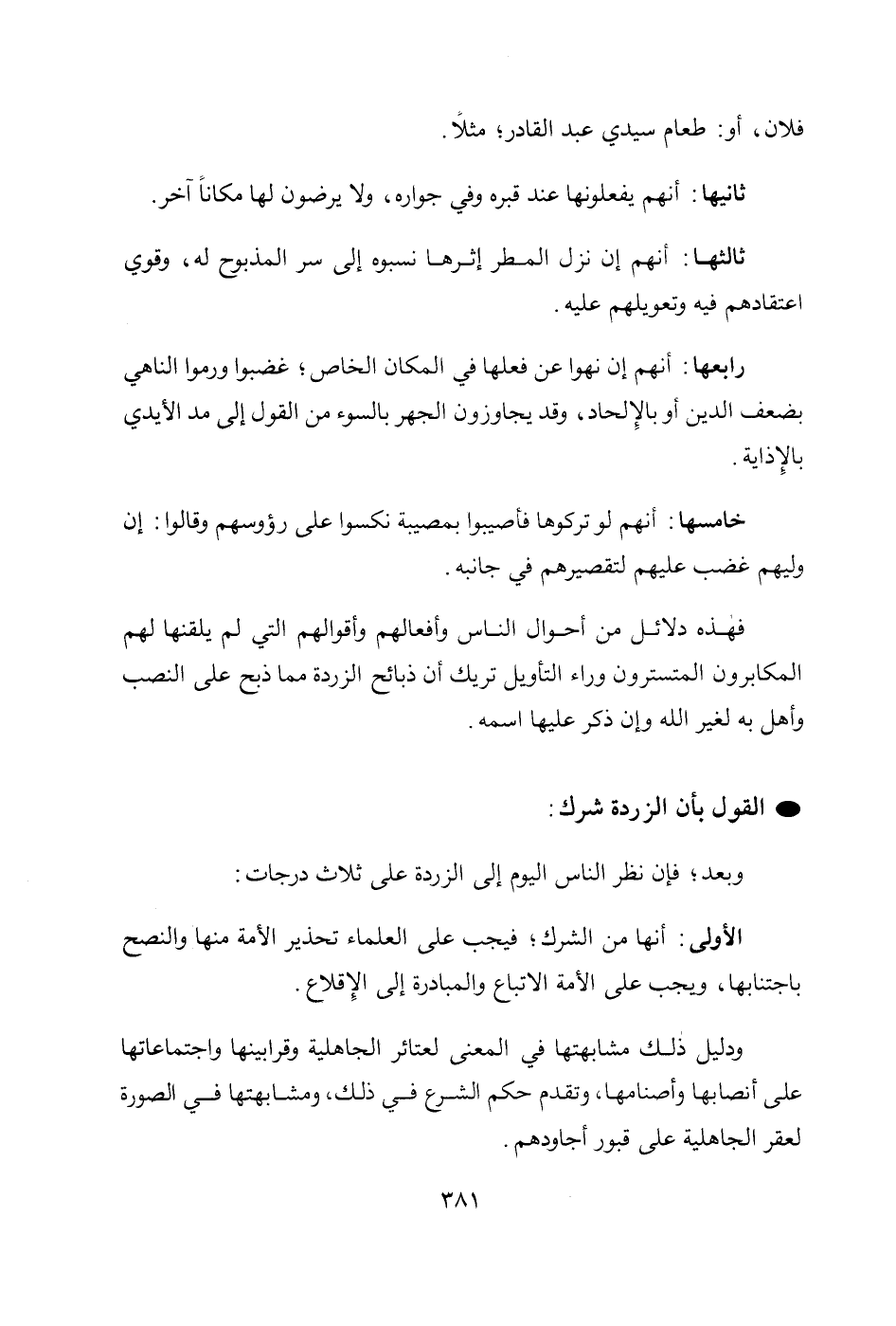 • القول بأن الزردة شرك: