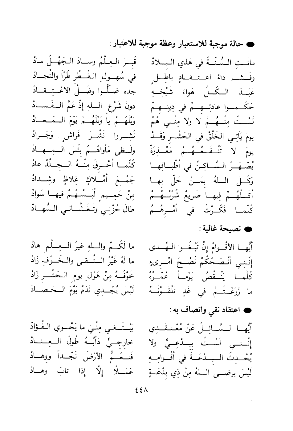 مَاتَتِ السُّنَّةُ فِي هَذِي الْبِلَادْ … قُبِرَ الْعِلْمُ وَسَادَ الْجَهْلُ سَادْ