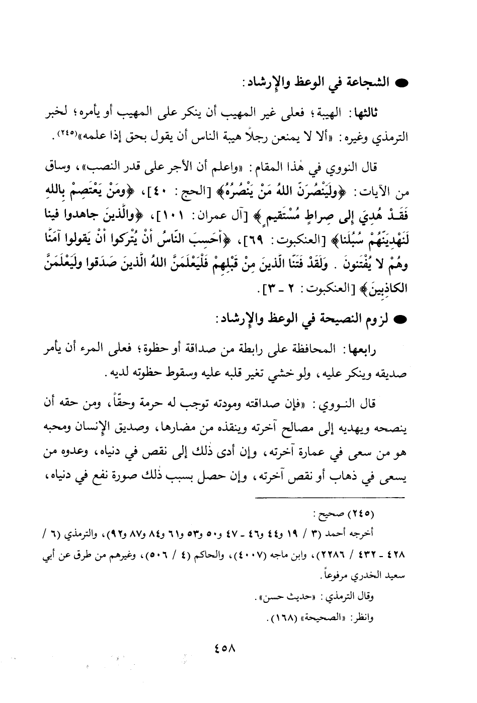 • لزوم النصيحة في الوعظ والإِرشاد: