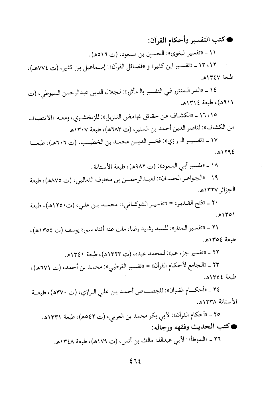 23 - "الجامع لأحكام القرآن" = "تفسير القرطبي": محمد بن أحمد، (ت 671هـ)، طبعه 1354هـ.