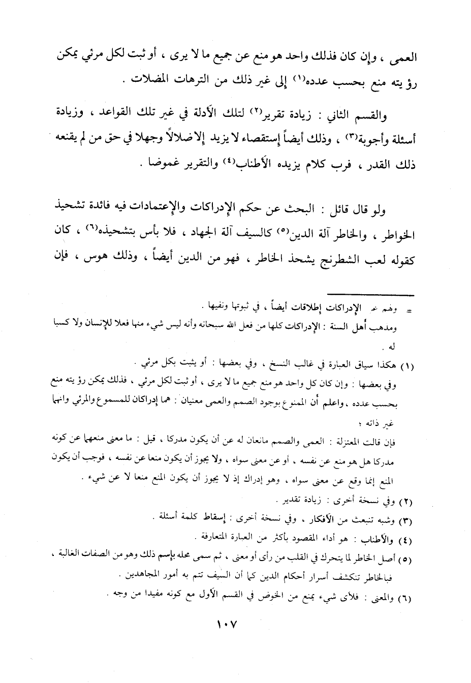 وَالْقسم الثَّانِي زِيَادَة تَقْرِير لتِلْك الْأَدِلَّة فِي غير تِلْكَ الْقَوَاعِد وَزِيَادَة أسئلة وأجوبة وَذَلِكَ أَيْضا إستقصاء لَا يزِيد إِلَّا ضلالا وجهلا فِي حق من لم يقنعه ذَلِك الْقدر فَرب كَلَام يزِيدهُ الْأَطْنَاب والتقرير غموضا