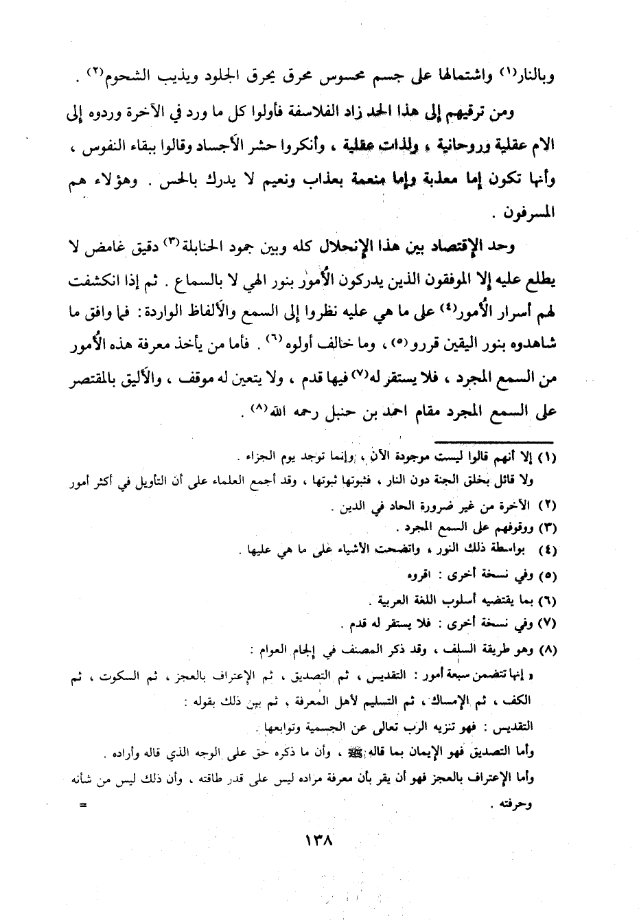 وحد الإقتصاد بَين هَذَا الإنحلال كُله وَبَين جمود الْحَنَابِلَة دَقِيق غامض لَا يطلع عَلَيْهِ إِلَّا الموفقون الَّذين يدركون الْأُمُور بِنور إلهي لَا بِالسَّمَاعِ