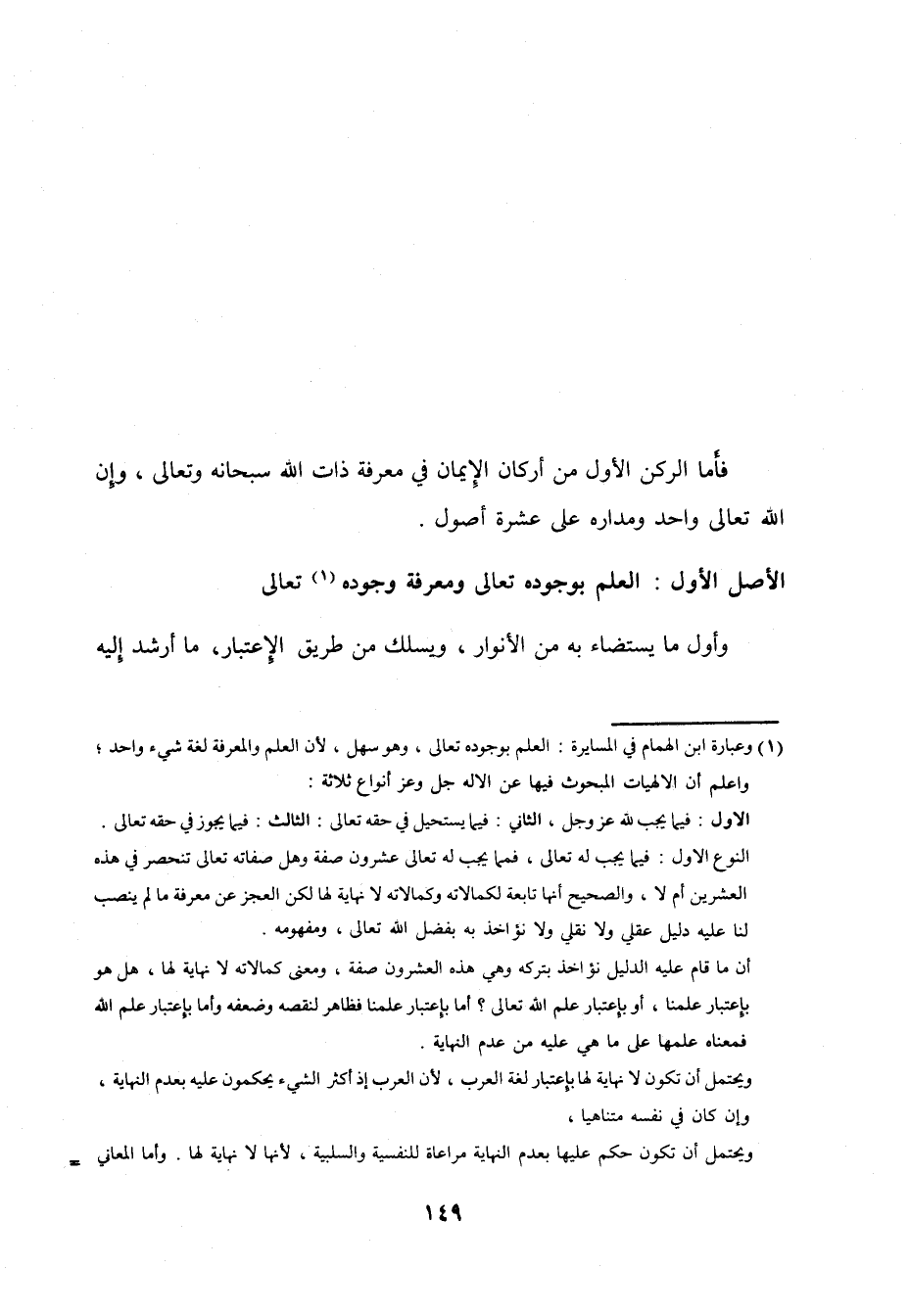 الأَصْل الأول الْعلم بِوُجُودِهِ تَعَالَى وَمَعْرِفَة وجوده تَعَالَى