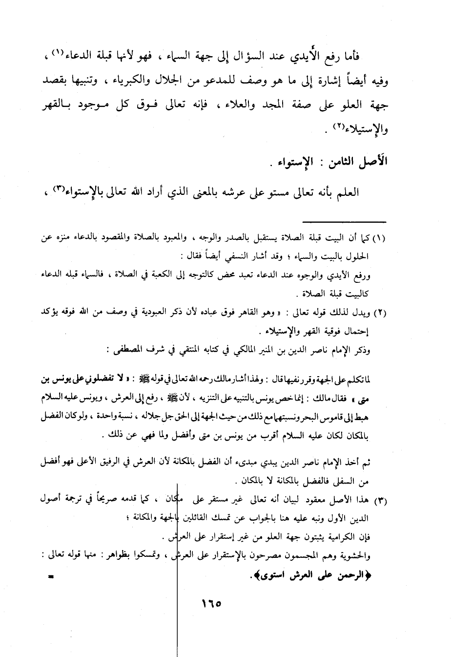 الْعلم بِأَنَّهُ تَعَالَى مستو على عَرْشه بِالْمَعْنَى الَّذِي أَرَادَ الله تَعَالَى بالاستواء