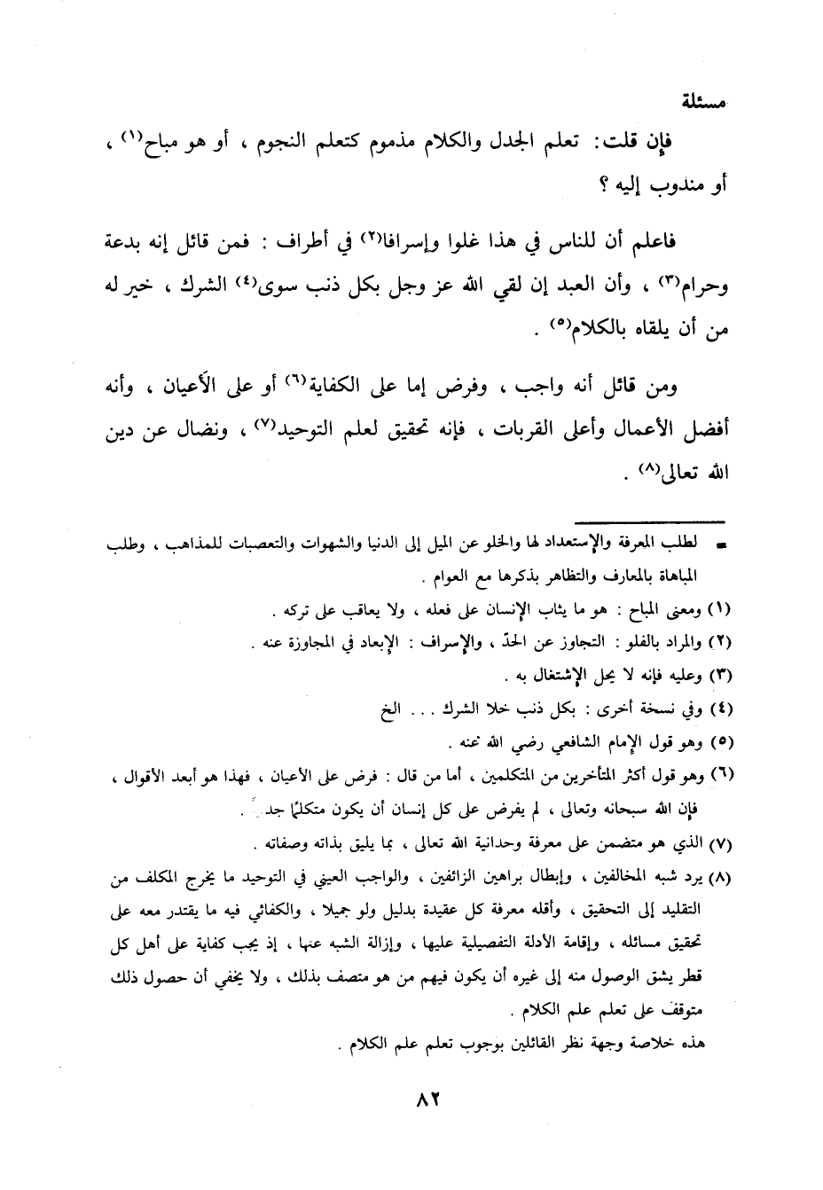 فَإِن قلت تعلم الجدل وَالْكَلَام مَذْمُوم كتعلم النُّجُوم أَو هُوَ مُبَاح أَو مَنْدُوب إِلَيْهِ