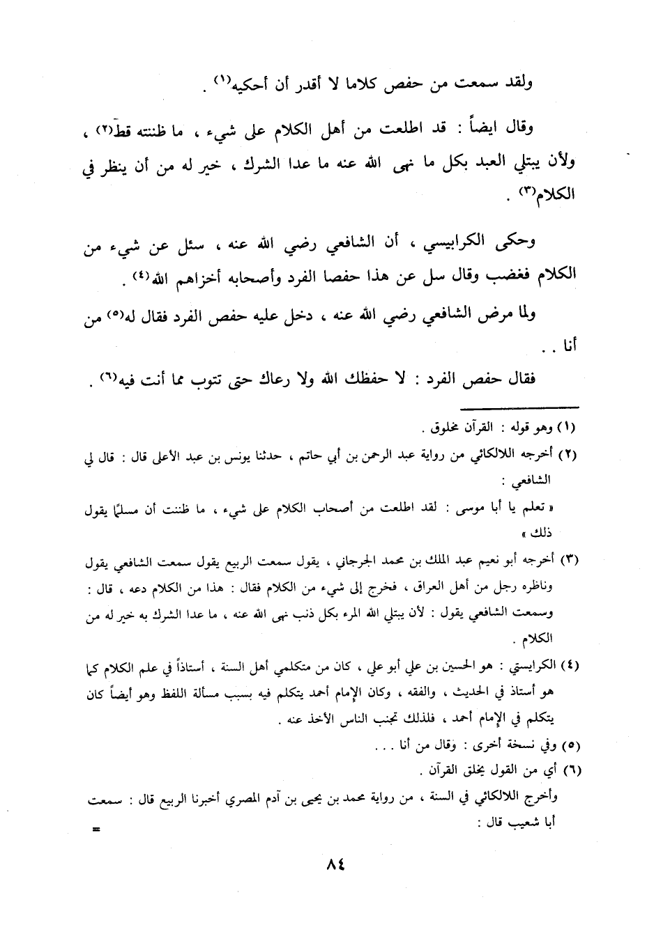 وَحكى الْكَرَابِيسِي أَن الشَّافِعِي رَضِي الله عَنهُ سُئِلَ عَن شَيْء من الْكَلَام فَغَضب وَقَالَ سل عَن هَذَا حفصا الْفَرد وَأَصْحَابه أخزاهم الله