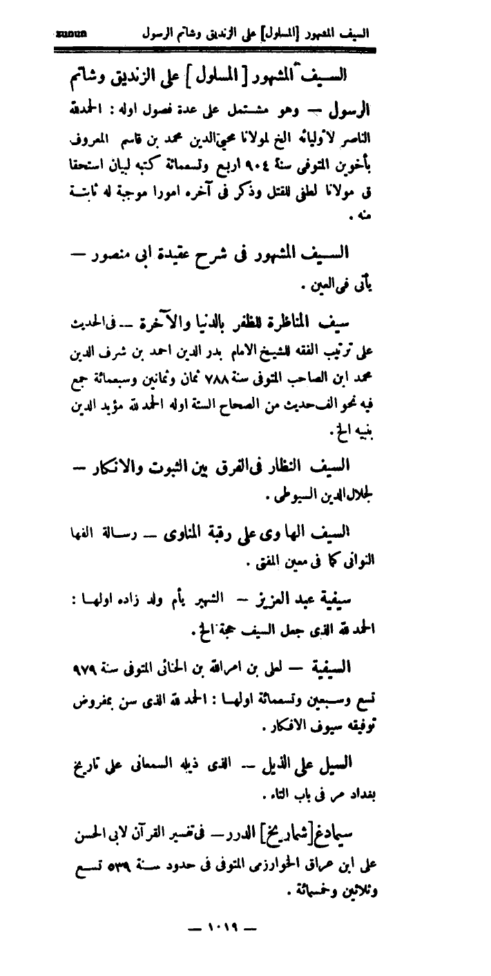 السيف المشهور المسلول، على الزنديق وشاتم الرسول