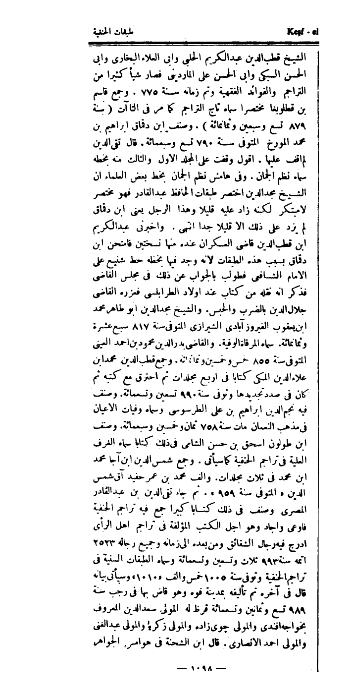 وهو أجل الكتب المؤلفة في تراجم أهل الرأي، أدرج فيه رجال: (الشقائق) ، ومن بعده إلى زمانه.