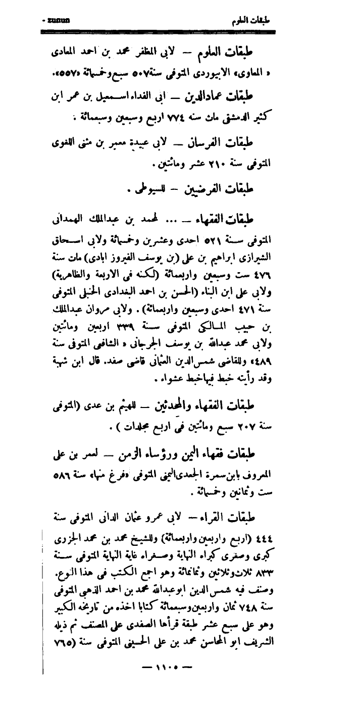 طبقات: الفقهاء، والمحدثين