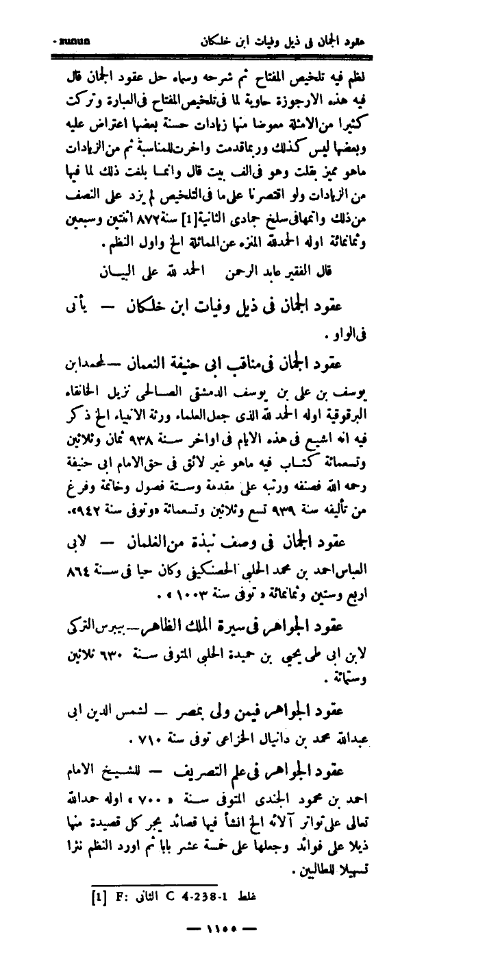 عقود الجمان، في ذيل: (وفيات ابن خلكان)