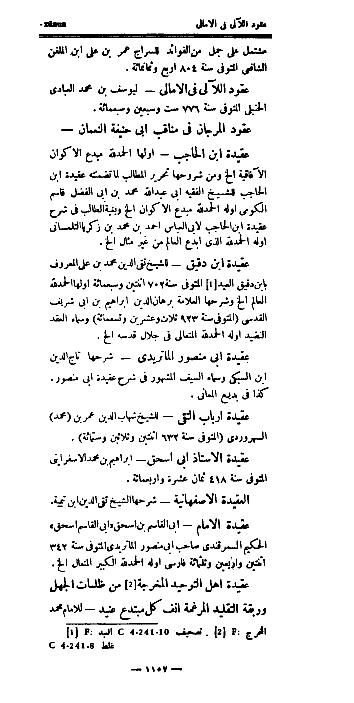 (تحرير المطالب، لما تضمنته عقيدة ابن الحاجب) .
