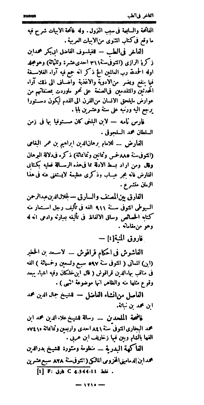 للفيلسوف، الفاضل، أبي بكر: محمد بن زكريا الرازي.