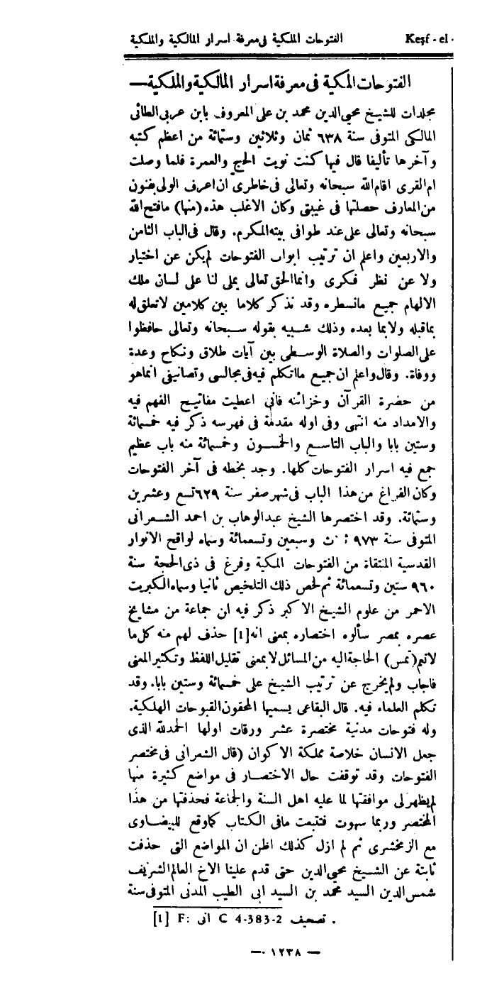 الفتوحات المكية، في معرفة أسرار المالكية والملكية