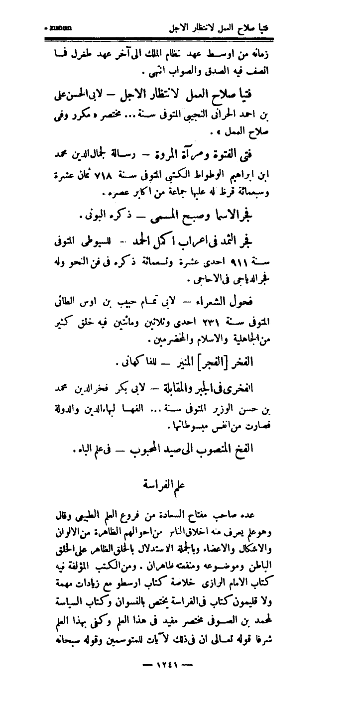 عده صاحب (مفتاح السعادة) : من فروع العلم الطبيعي.