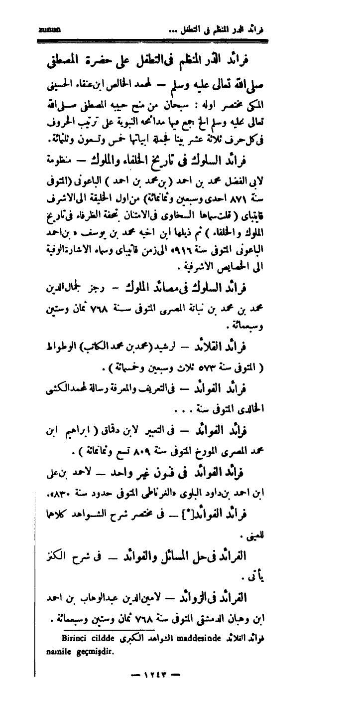 الفرائد، في الزوائد