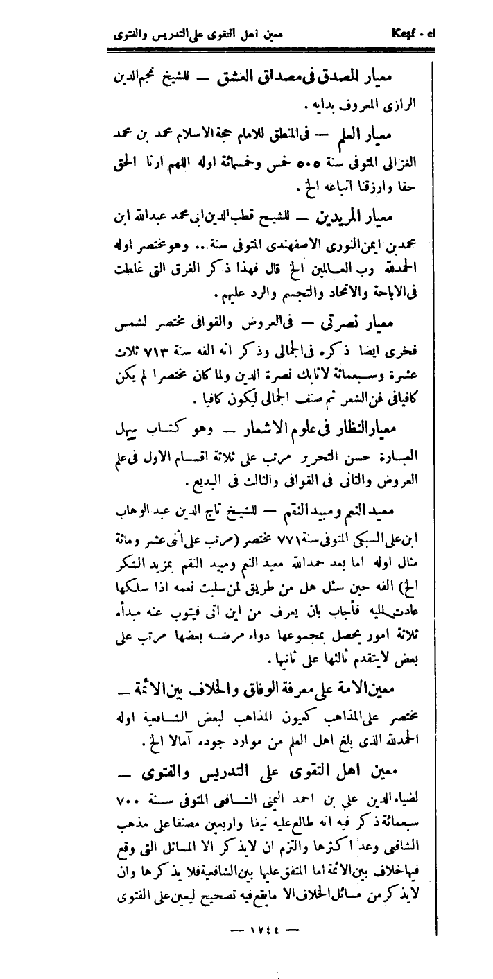 وأن لا يذكر من مسائل الخلاف، إلا ما يقع فيه تصحيح، ليعين على الفتوى. (2/ 1745)