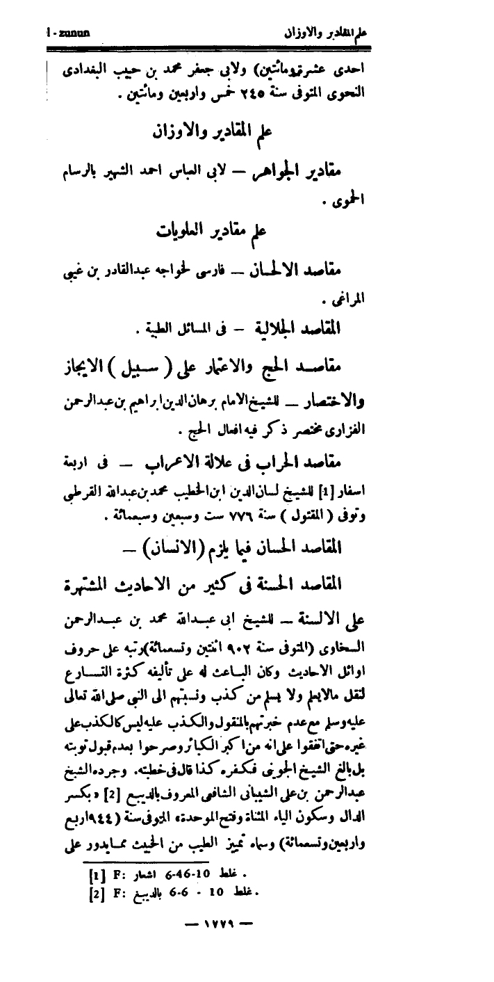 ذكر أنه رأى: (المقاصد) كتابا حسنا.