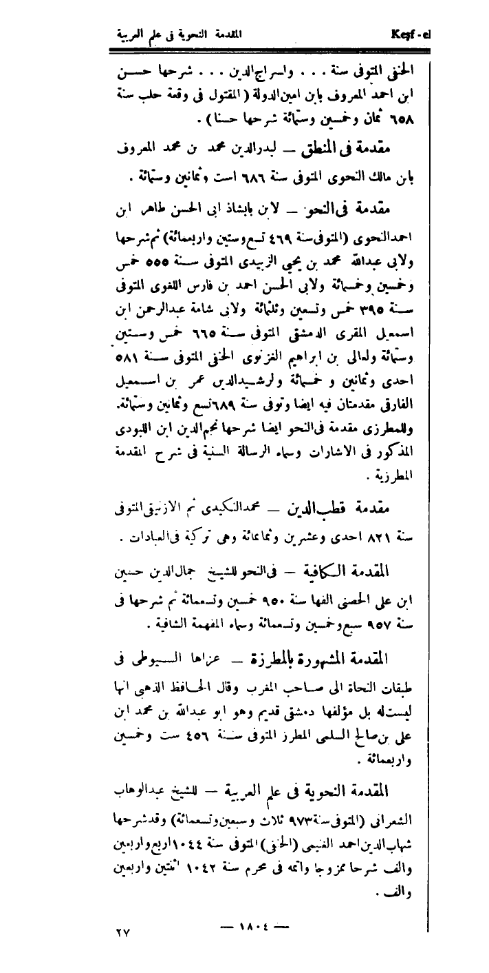المقدمة الكافية