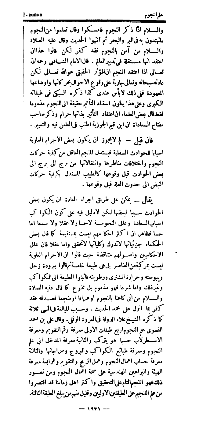 وأكثر أهل زماننا قد اقتصروا من علم التنجيم، على الطبقتين الأوليين.