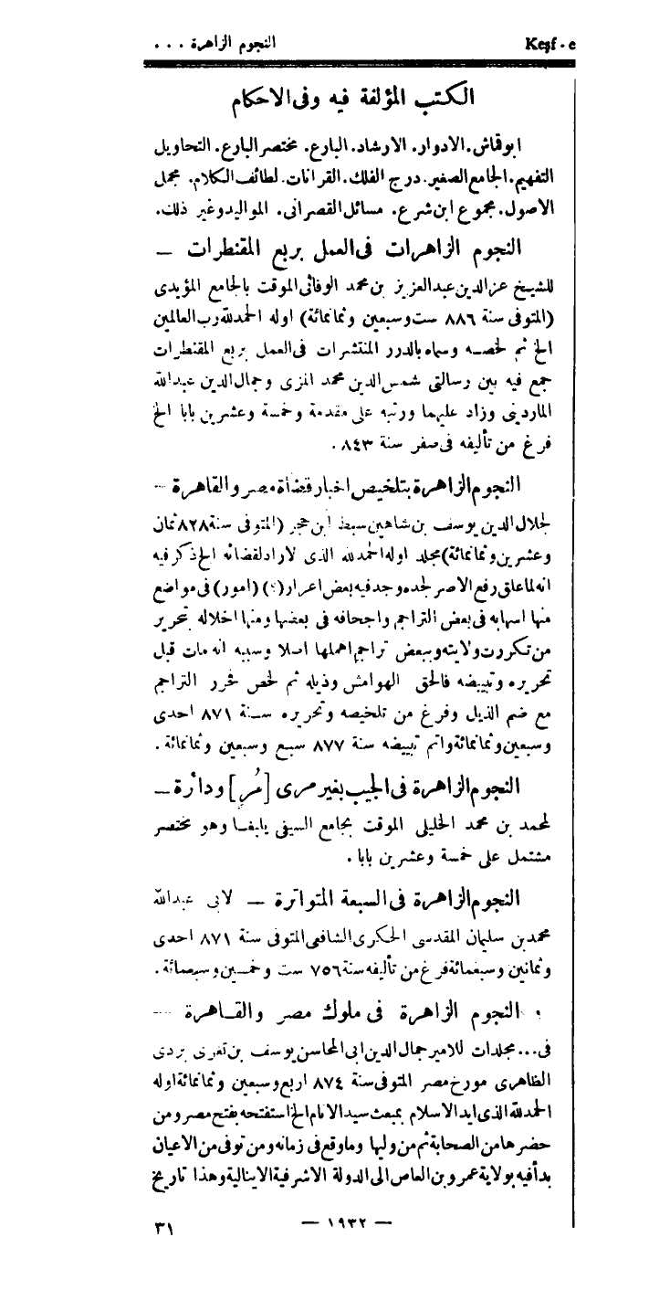 وسمَّاه: (الكواكب الباهرة، من النجوم الزاهرة) .
