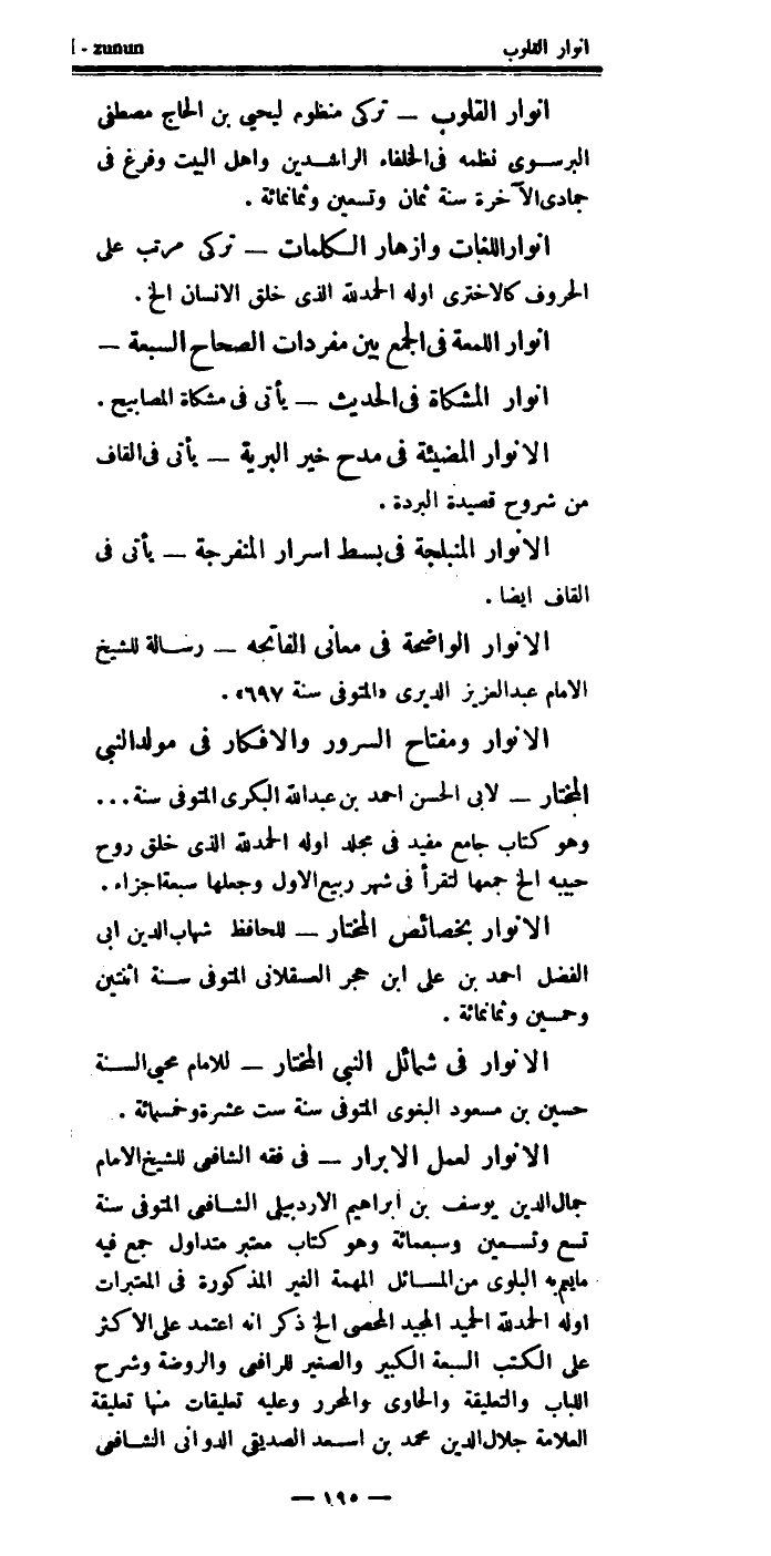 وسماه: (أنوار الأنوار) .