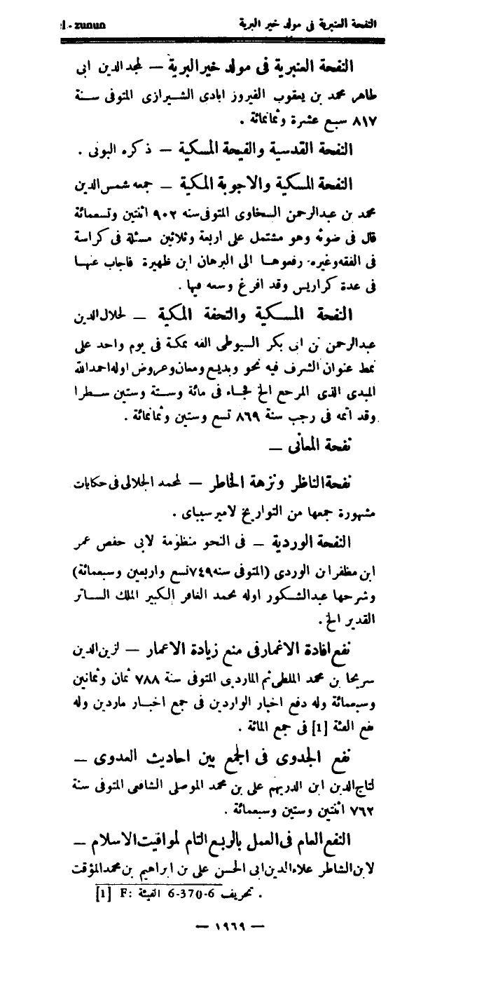 النفحة القدسية، والفيحة المسكية