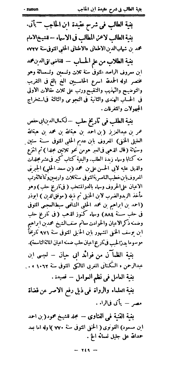 تاريخا، موسوما: (بدر الحبب، في تاريخ أعيان حلب) .