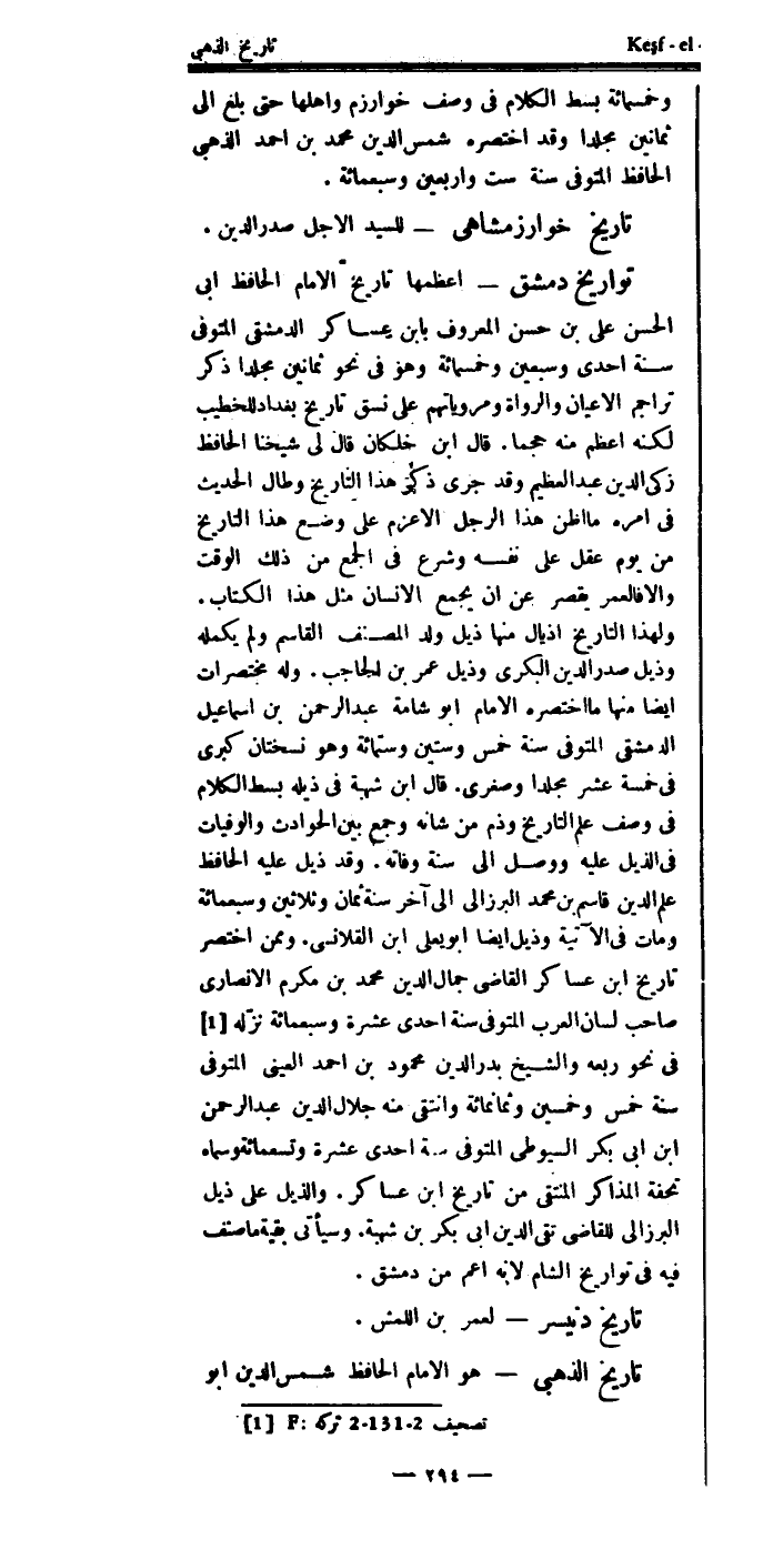تاريخ: الإمام، الحافظ، أبي الحسن: علي بن حسن، المعروف: بابن عساكر الدمشقي.