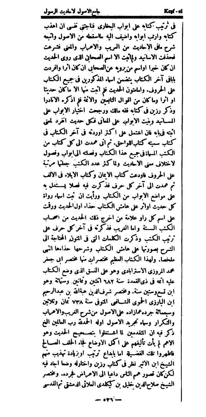 قال: لما وقفت على الكتب، ورأيت كتاب رزين هو أكبرها، وأعمها، حيث حوى الكتب الستة، التي هي أم كتب الحديث، وأشهرها.