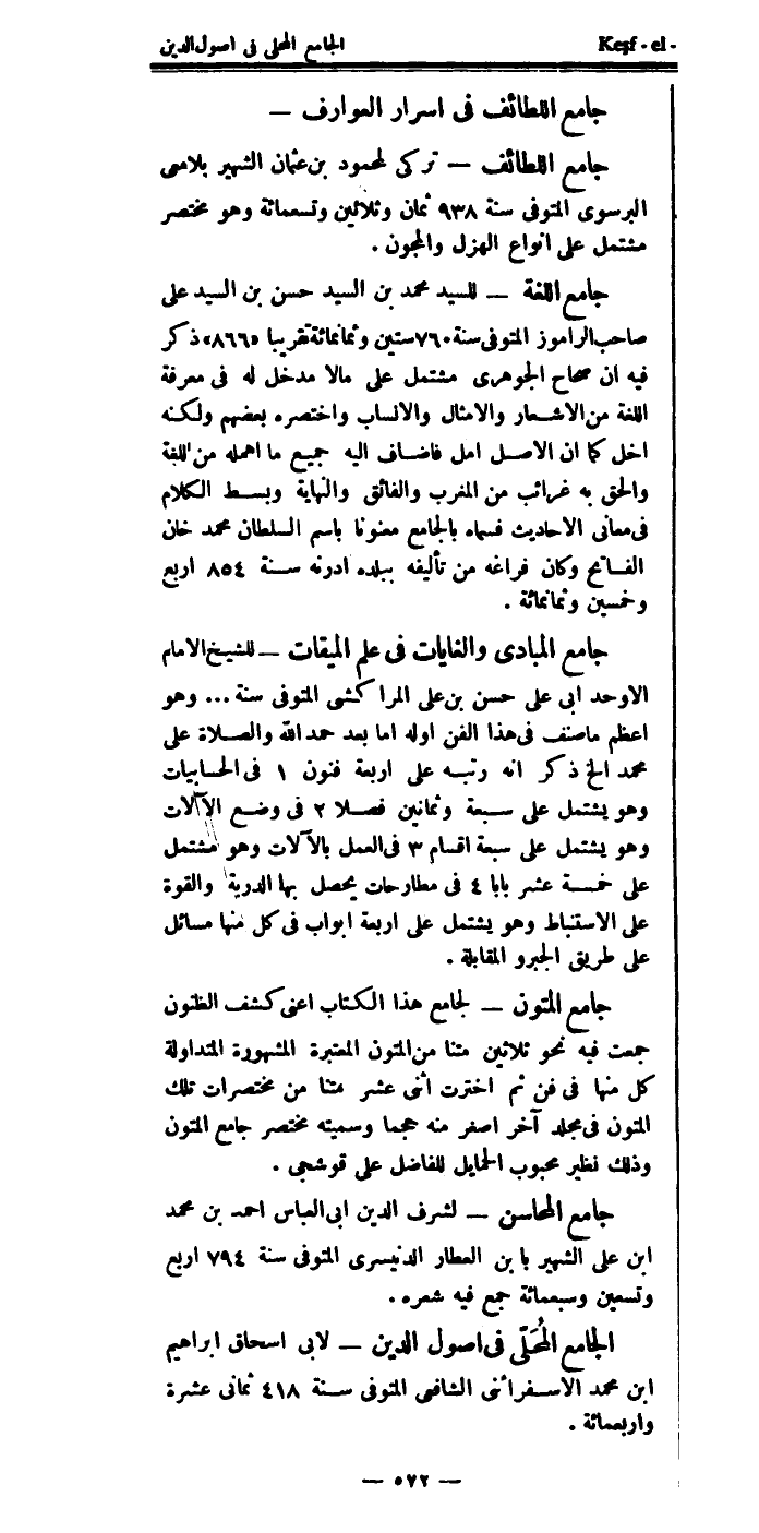 كتاب كشف الظنون عن أسامي الكتب والفنون (اسم الجزء: 1)