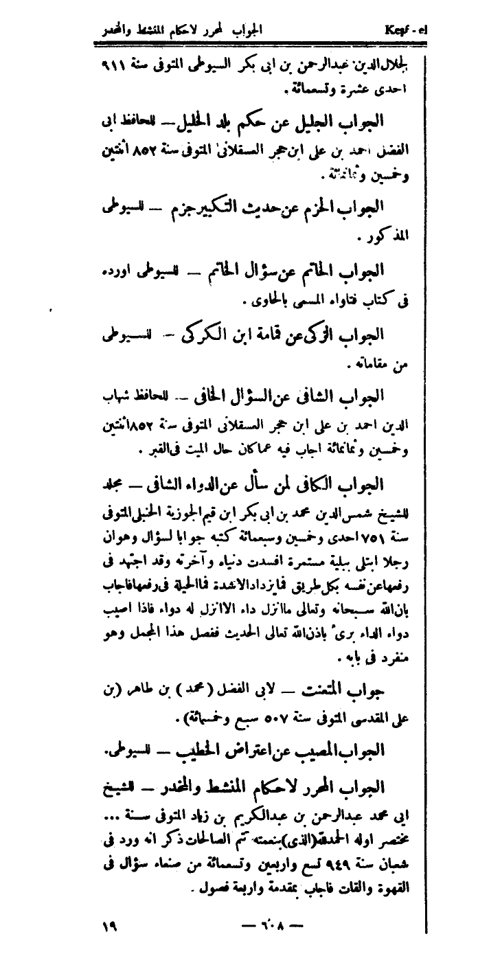 الجواب الشافي، عن السؤال الخافي
