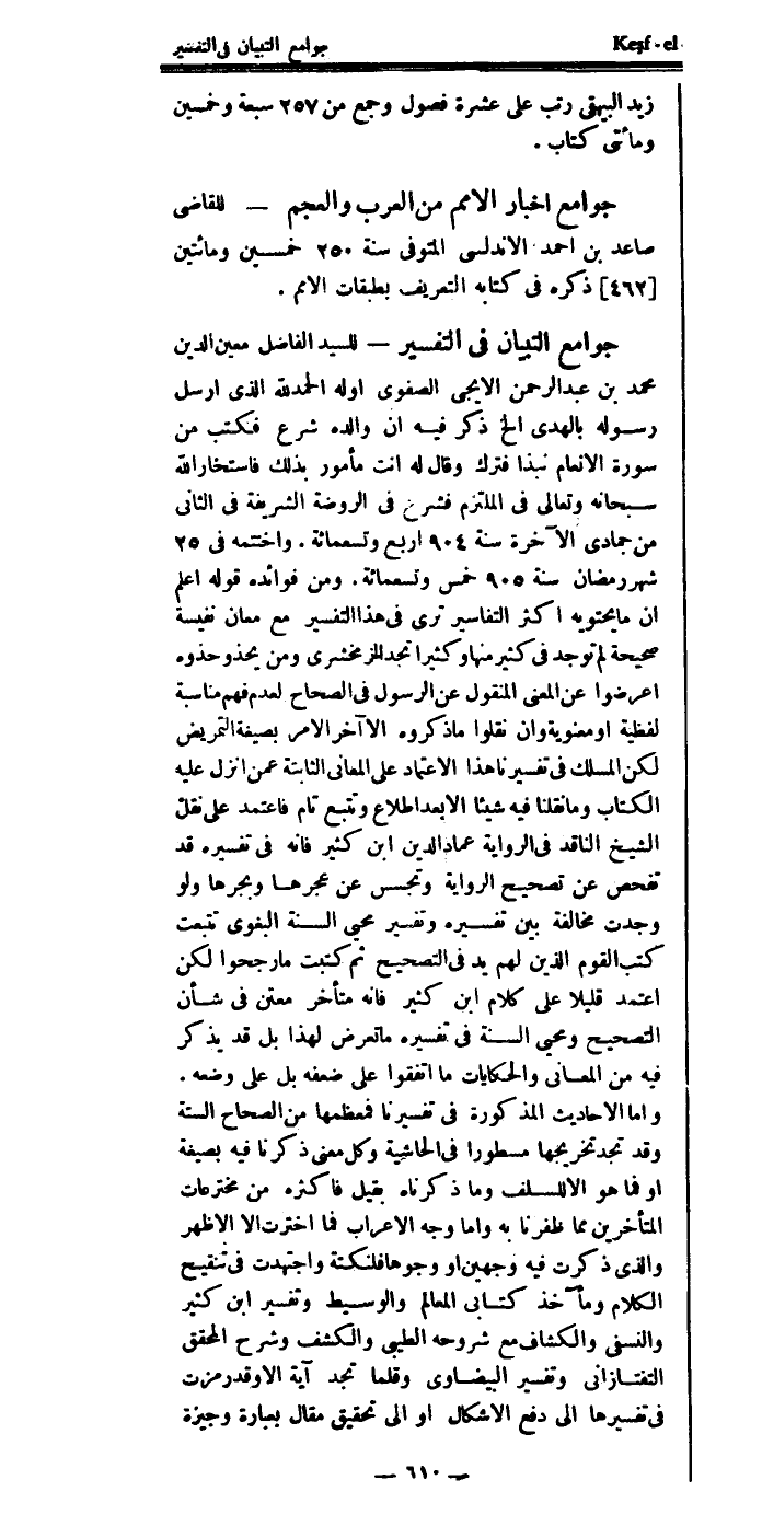 قوله: اعلم أن ما يحتويه أكثر التفاسير ترى في هذا التفسير مع معان نفيسة صحيحة لم توجد في كثير منها، وكثيراً تجد الزمخشري ومن يحذو حذوه اعرضوا عن المعنى المنقول عن الرسول في الصحاح؛ لعدم فهم مناسبة لفظية أو معنوية، وإن نقلوا ما ذكروه إلا آخر الأمر بصيغة التمريض.