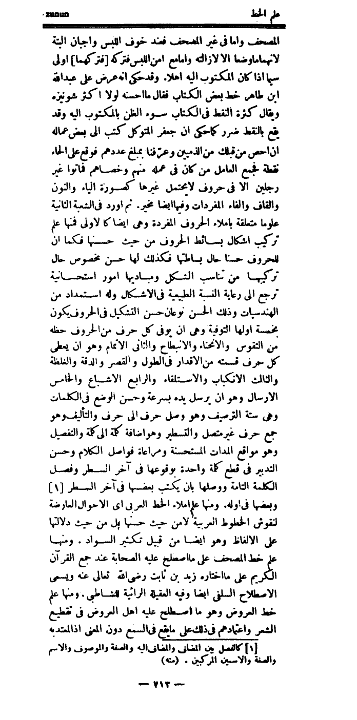 ومنها: علم إملاء الخط العربي، أي: الأحوال العارضة لنقوش الخطوط العربية لا من حيث حسنها، بل من حيث دلالتها على الألفاظ، وهو أيضاً من قبيل تكثير السواد.