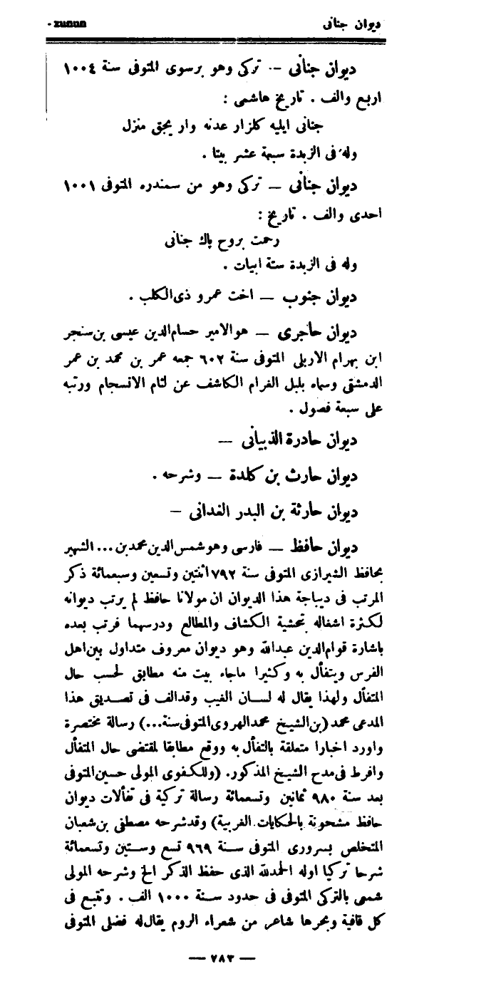 وللكفوي المولى حسين المتوفى: بعد سنة 980 ثمانين وتسعمائة رسالة تركية في تفألات ديوان حافظ مشحونة بالحكايات الغربية.
