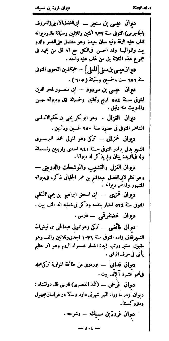 ورتب زبدة أشاعر شعراء الروم، وهو أثر عظيم يأتي في حرف الزاي.