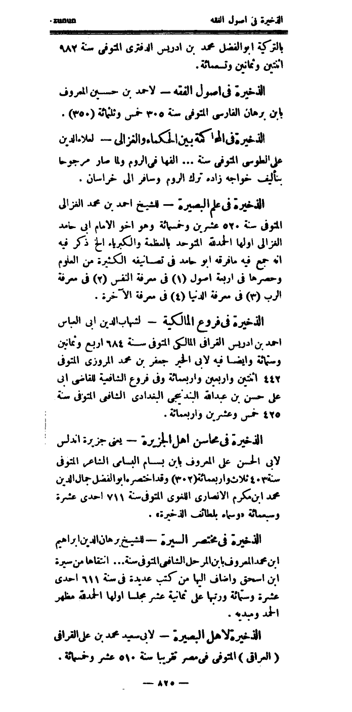 وسماه بـ (لطائف الذخيرة) .