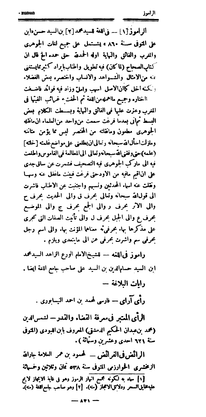 ثم إني بعدما فرغت، سمعت من واحد من العلماء أن ما نقله الجوهري مطعون، وما نقلته من المختصر ليس مما يؤمن متانته، وما زلت أسأل الله -سبحانه وتعالى- أن يطلعني على مواضع غلمته (خلته) (علمه) حتى وفقني الله -سبحانه وتعالى- إلى المطالعة في (القاموس) ، واطلعت فيه على ما ركب الجوهري فيه التصحيف.