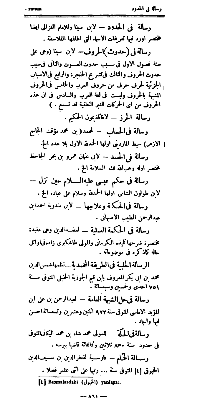أورد فيها تعريفات الأسماء التي أطلقها الفلاسفة.