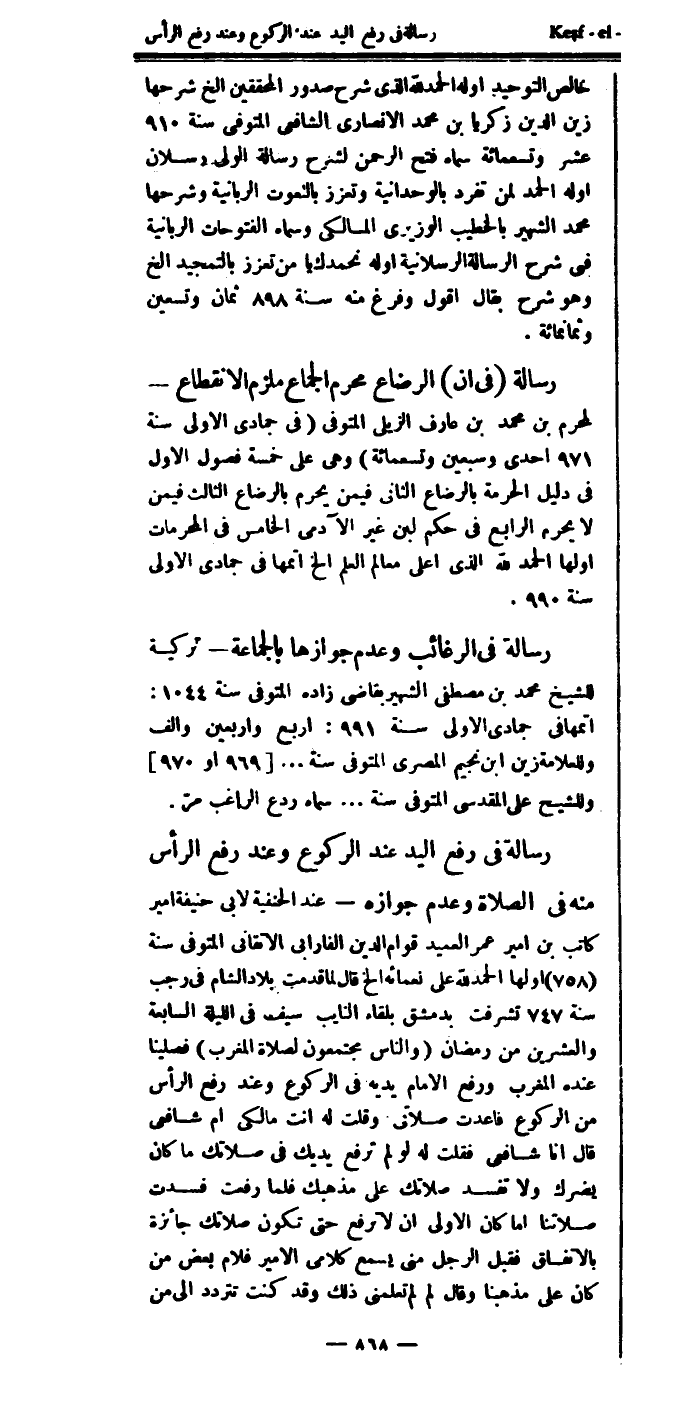 رسالة في رفع اليد عند الركوع، وعند رفع الرأس منه في الصلاة، وعدم جوازه