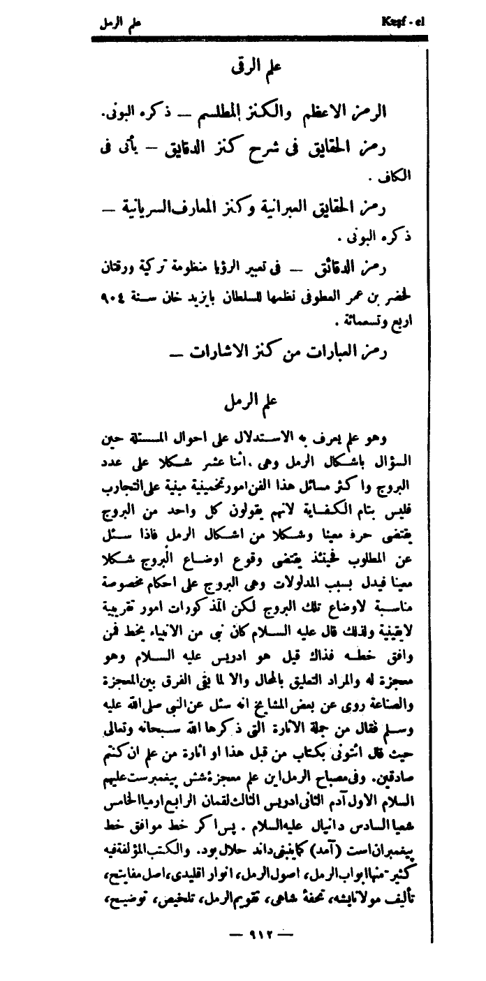 وفي (مصباح الرمل) : أين علم معجزة شش بيغمبر: ست - عليهم السلام -.