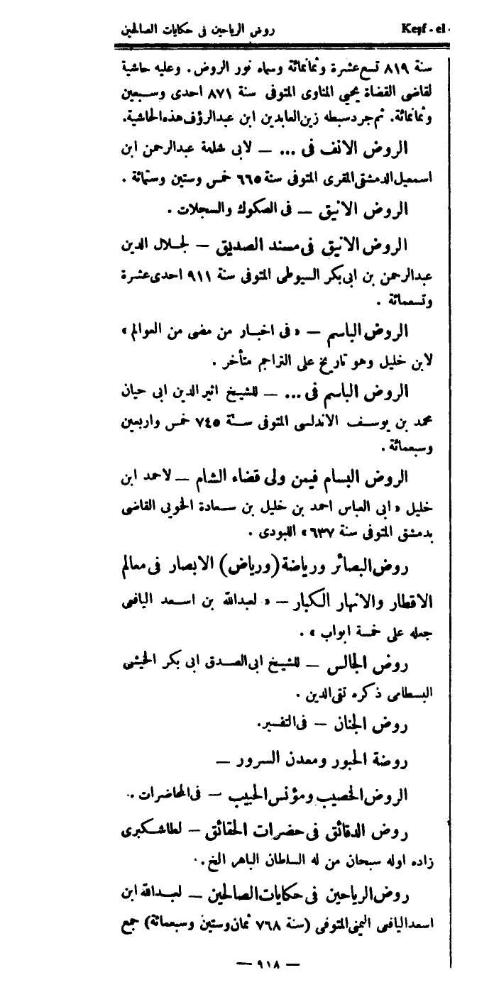 ذكره العاشق في (الذيل) : أن له كتابا، مسمى: (بروض الرياحين) .