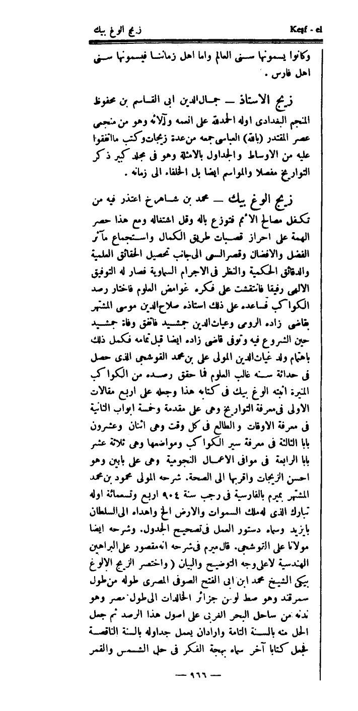 فكمل ذلك: باهتمام، ولد غياث الدين: المولى: علي بن محمد القوشجي، الذي حصل في حداثة سنه غالب العلوم، فما حقق رصده من الكواكب المنيرة، أثبته: ألوغ بيك في كتابه هذا.