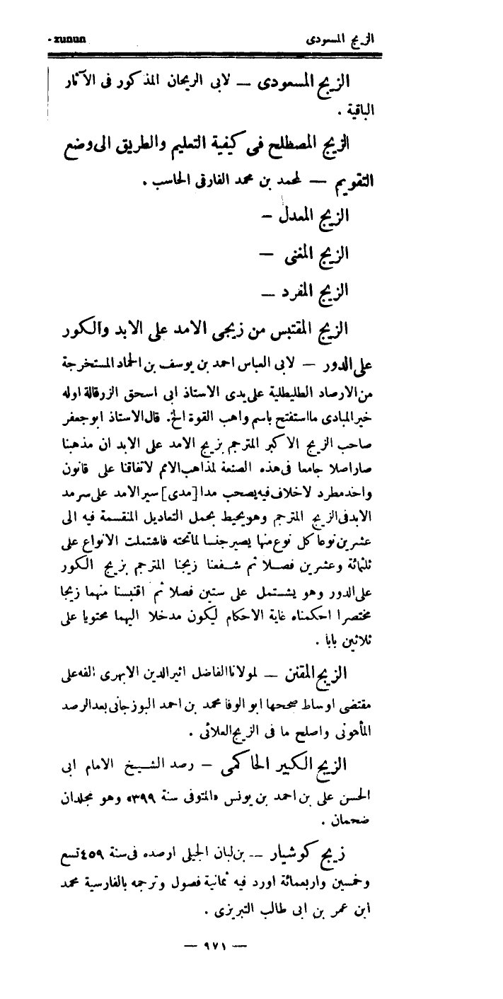 قال الأستاذ، أبو جعفر، صاحب (الزيج الأكبر) ، المترجم (بزيج الأبد، على الأمد) :