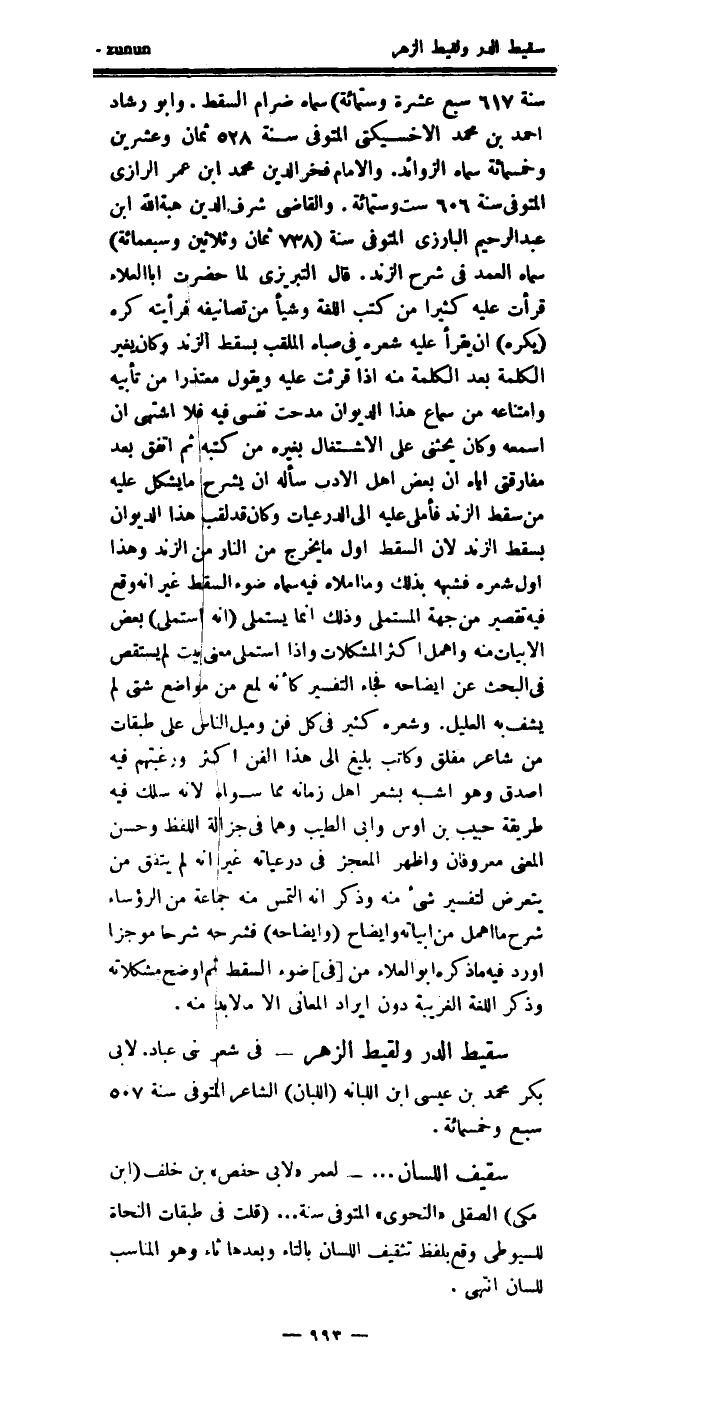 قلت: في (طبقات النحاة) للسيوطي، وقع بلفظ: (تثقيف اللسان) ، بالتاء، وبعدها ثاء.